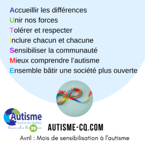 Sensibiliser, c’est poser des gestes concrets : s’informer, adapter nos environnements, faire preuve d’ouverture et de bienveillance. En rendant l’autisme plus visible — dans toute sa diversité — nous contribuons ensemble à bâtir une société plus inclusive, où chacun et chacune peut trouver sa place. L’inclusion des personnes autistes est une condition indispensable pour leur permettre un parcours de vie équitable et épanouissant.