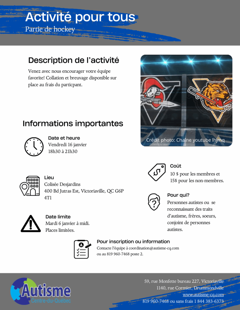 Pour inscription ou information 819 960-7468 poste 2 ou coordination@autisme-cq.com